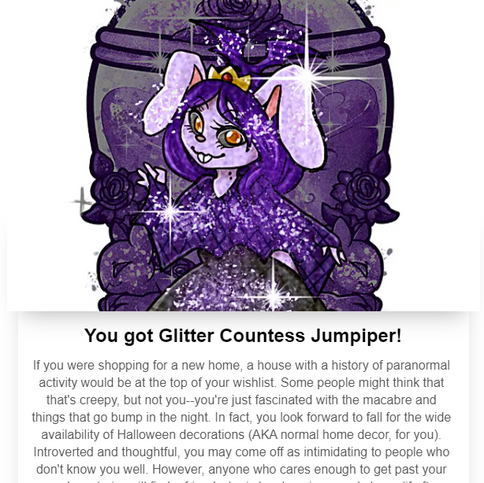 To build engagement around this, I created a quiz titled, "Which Glitter Queen Are You?" I made up 10 questions with answers corresponding to each Queen in the series, and wrote out a paragraph for each result stating how the player's personality could be linked to their chosen Queen. It's one of the most fun projects I've had the privilege of doing at this job.