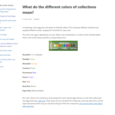 Below are images from the current Hatchlings support center. Click an image to view the full text. All copy and layout created by yours truly.